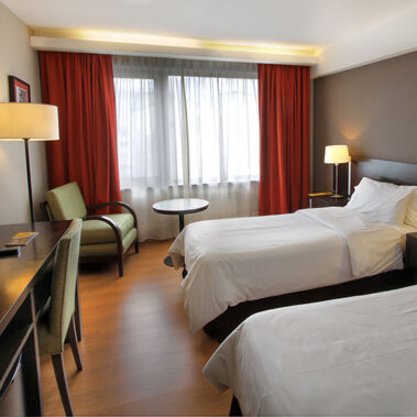El Hotel Crans Montana cuenta con 70 habitaciones amobladas con gran elegancia, a las cuales se accede mediante ascensor. Disponen de piso flotante, baño privado, secador de cabello, calefacción central, tv LCD por cable, caja seguridad, minibar y conexión Wi-Fi gratuita.